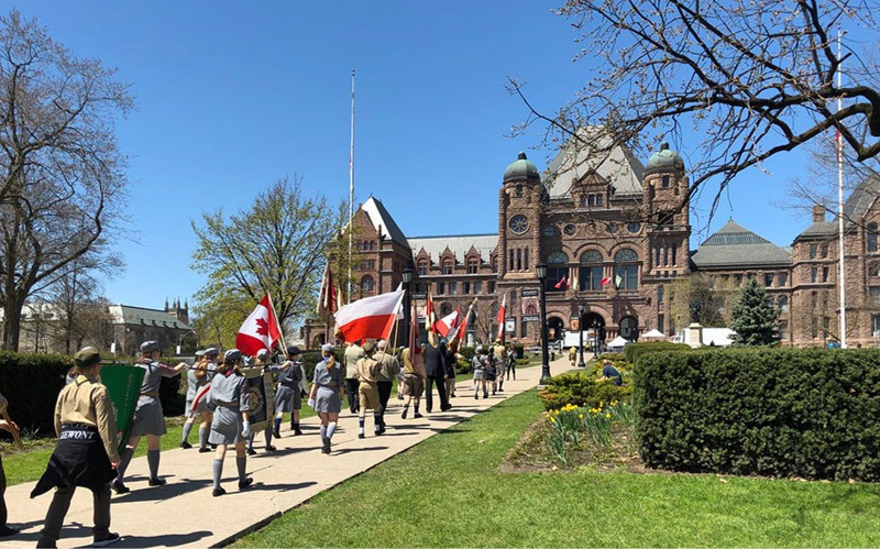 Po godz.14:00 przed budynkiem SPK została uformowana kolumna polonijna. Pochód prowadzony przez komendanta Placówki 114 SWAP Krzysztofa Tomczaka wraz z harcerzami niosącymi polską i kanadyjską flagę, przeszedł ulicą College przed Parlament Ontaryjski Queen’s Park.