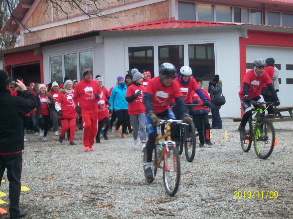 Czerwone koszulki z nadrukiem Niepodległej przygotowane były dla wszystkich uczestników, t.j. 200 czynnych biegaczy i równie licznych dopingujących obserwatorów. Był to bieg żywiołowy i radosny, choć w wichrze i chłodzie po grząskim terenie – bieg po medal z dumą przyjmowany. Po biegu radość była jeszcze większa. Pod rozległym dachem i w sali hetmańskiej, gdzie kto wolał, czekał na każdego gorący posiłek, napoje i słodkie ciastka.